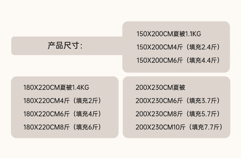 150x200cm4斤(填充2.7斤)