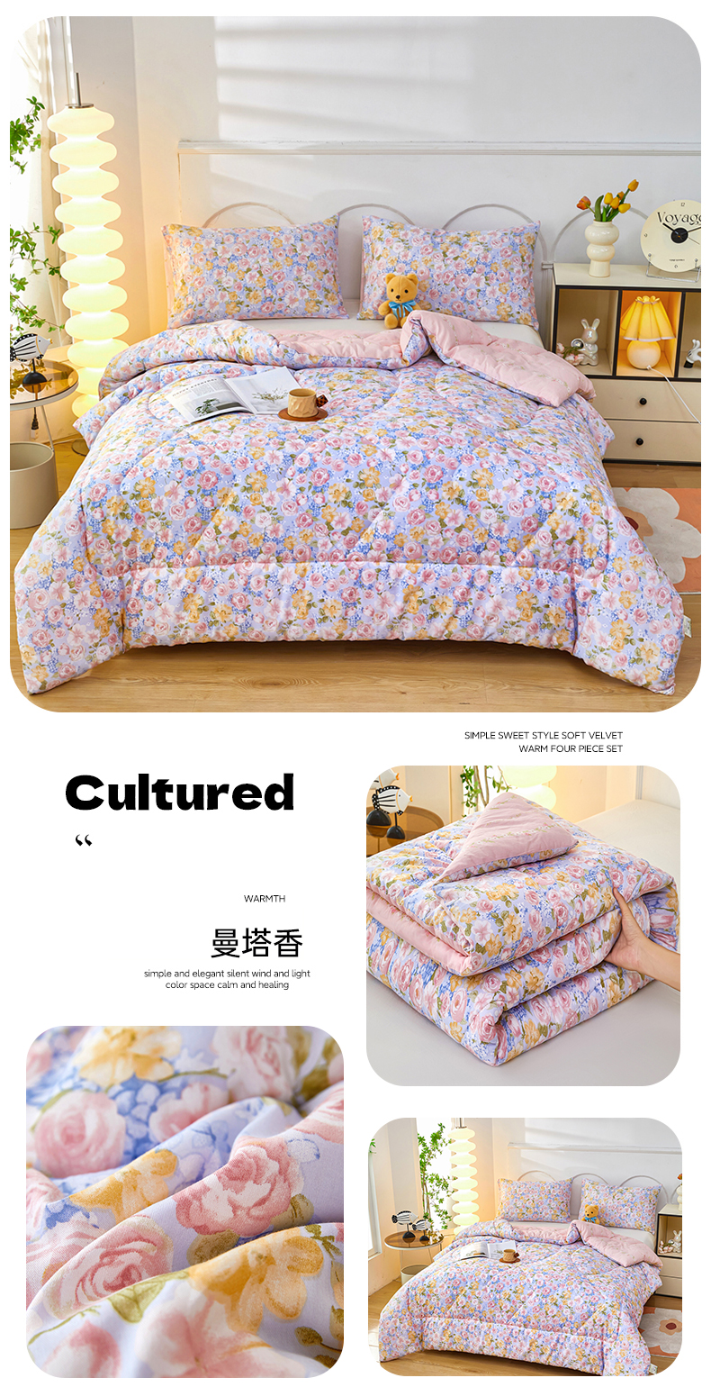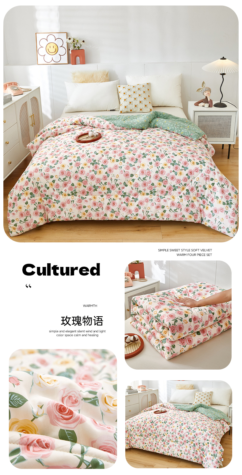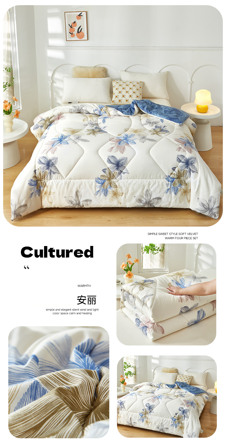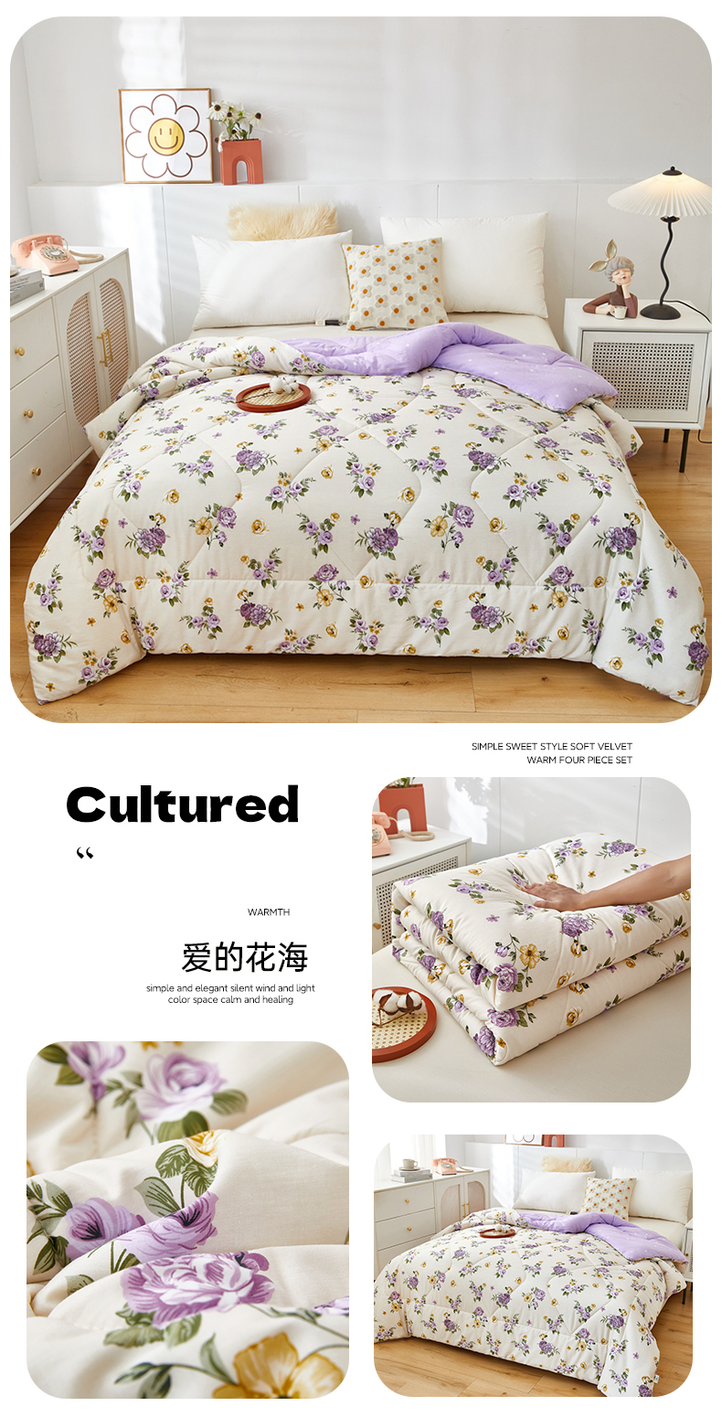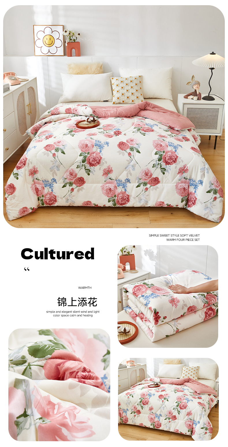 全棉羽丝绒冬被春秋被四季被