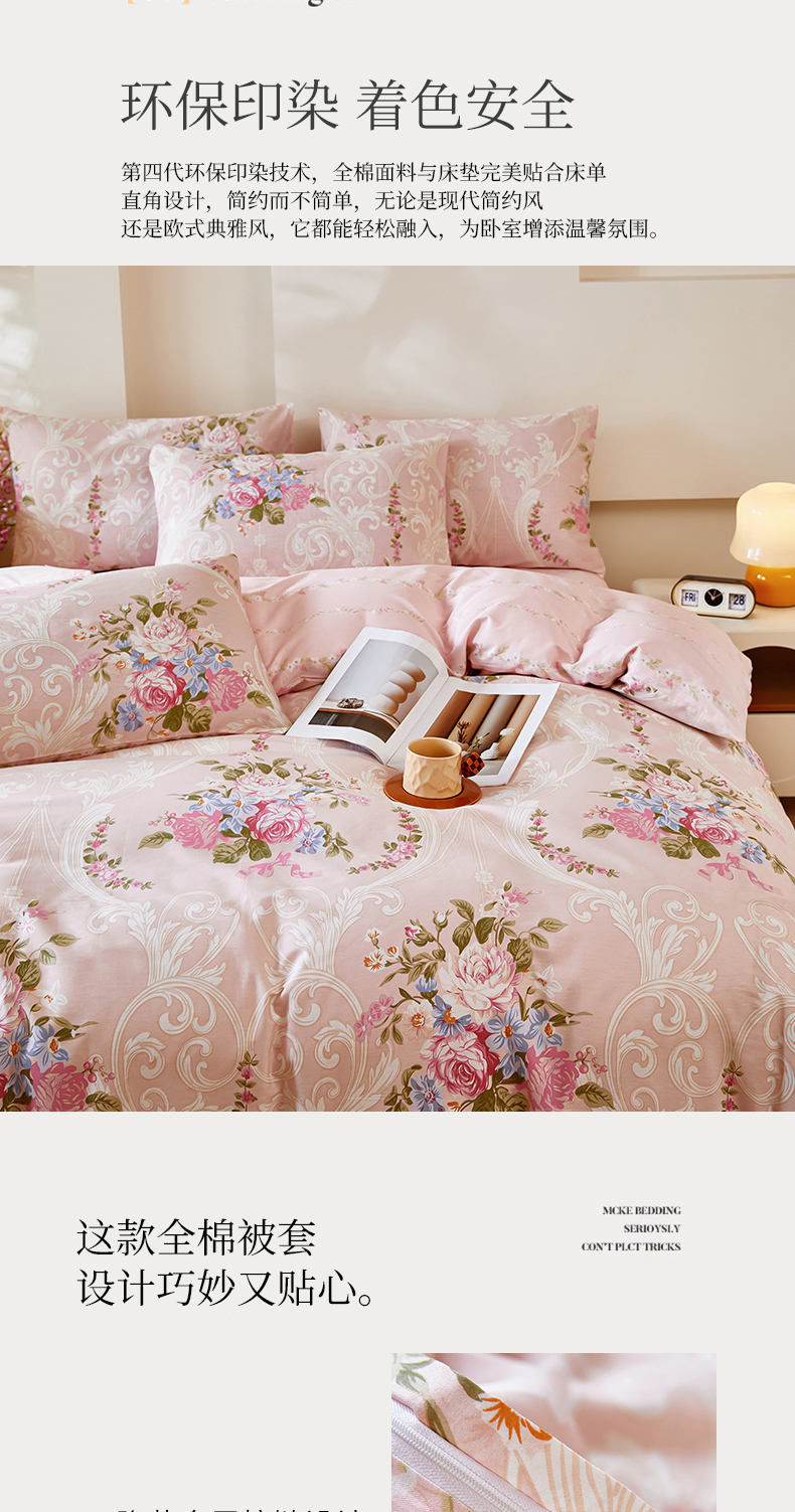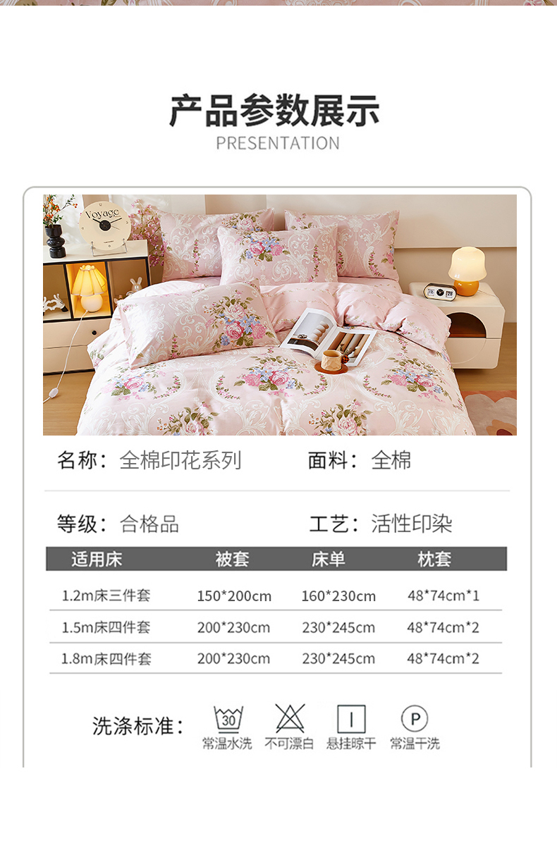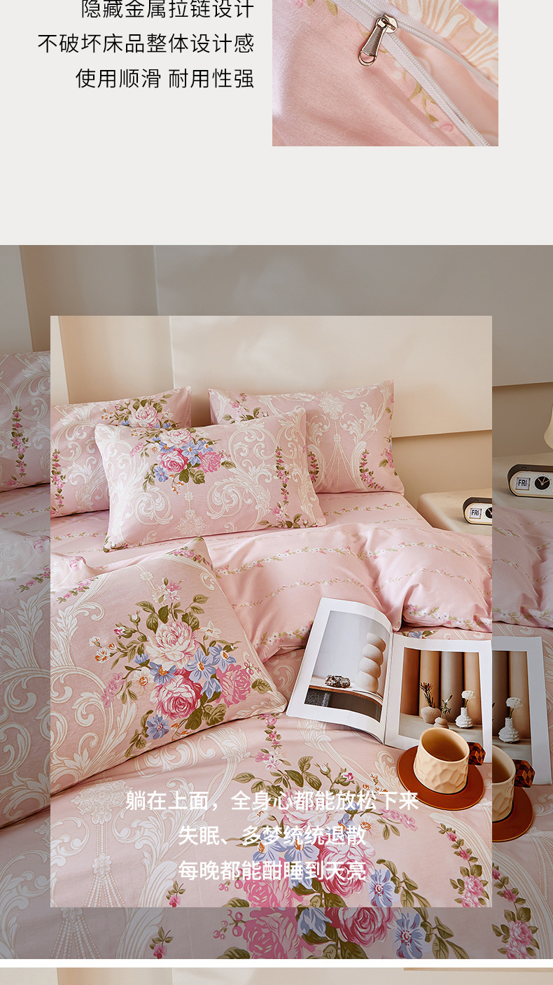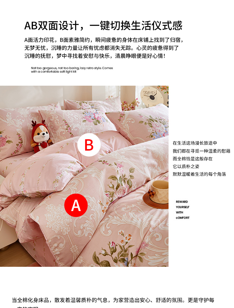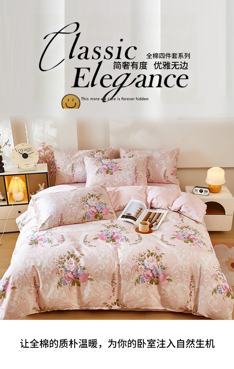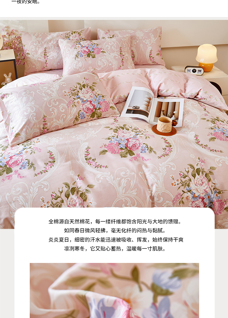 黛妮雅 2025新款AB版全棉印花床单款全棉四件套 送买家秀粉黛佳人