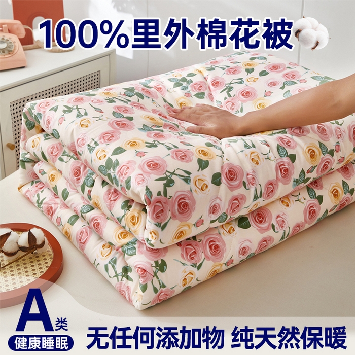 黛妮雅 2025新款里外全棉新疆棉花被春秋被冬被学生单人双人被芯被褥子冬被 玫瑰物语